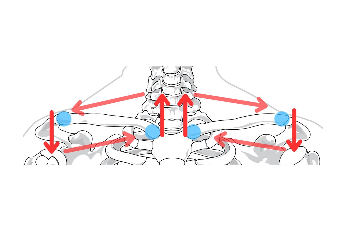 ちなみに、繰り返しになりますが、ミューイングの方法を使って鎖骨を横に開くことで、