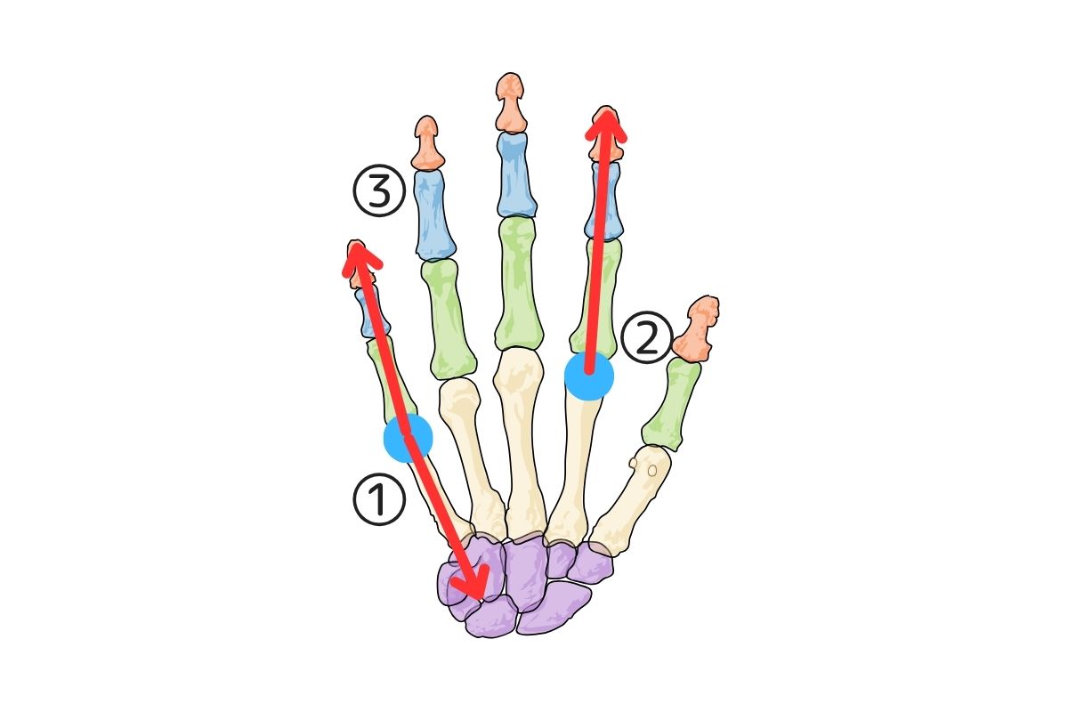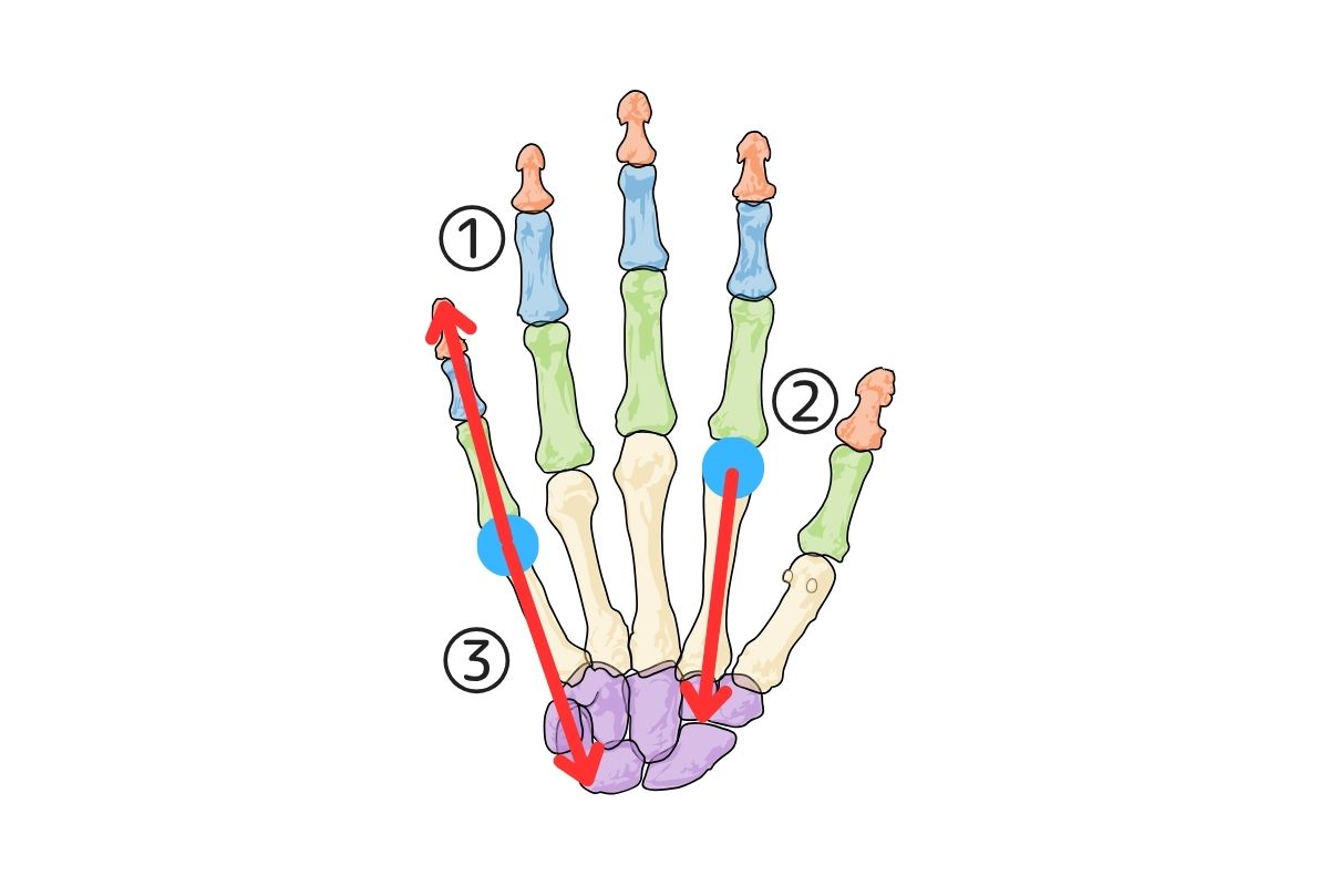 - 1.人差し指の付け根を手首に向かって押し出すように寄せることを始点にして