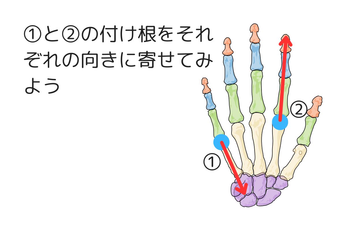 付け根を寄せる目的は指の付け根を先端に向けて伸ばすようにすることにあるのかもしれない