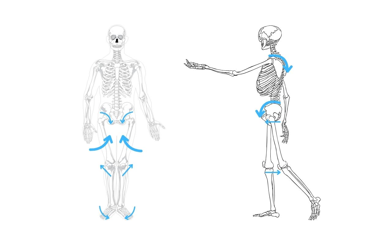 - 内に向ける:つま先重心→骨盤の前傾[9]