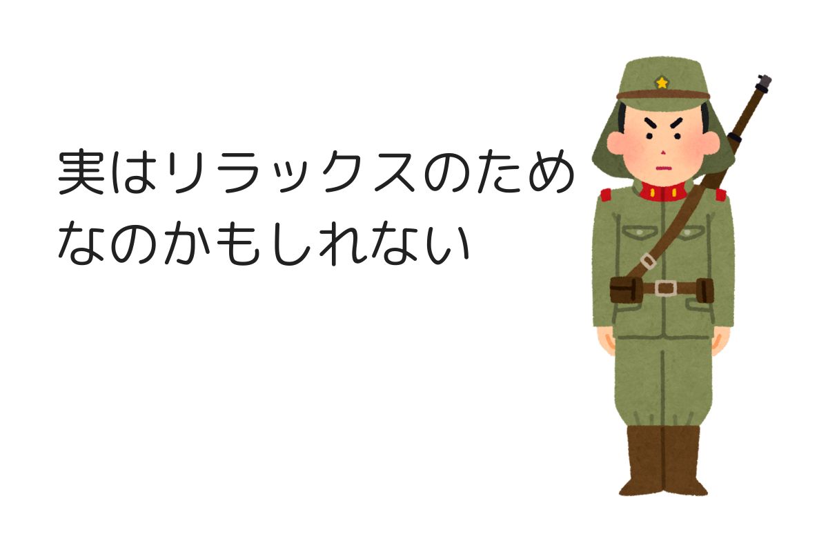 「Attntion!」こと「気をつけ!」の目的はもしかして「統制」のためにあるのではなく、リラックスを促すためにあるのではないか?
