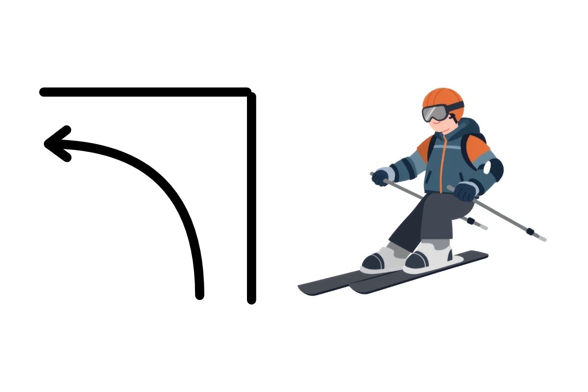 - その①:軸足に重心を乗せる→体重の移動を使って曲がる
